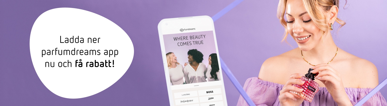 *Kontant utbetalning är ej möjlig, kan ej kombineras med andra erbjudanden. Gäller bara i parfumdreams app. Gäller t.o.m. 23.10.2025, gäller ej på Sale-artiklar. presentkort, märkena Chanel, Dior, Rituals, Sol de Janeiro och artiklar som refereras till Lyx eller drogerie.