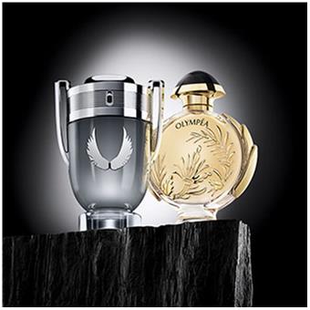 Olympéa är triumfens feminina uttryck. Här sluter sig den rena kvinnligheten samman med blommig fräschör. Det här är en doft som uppfyller sinnena. Även flaskan påminner om en grekisk amfora, men då förstås i den feminina, mjukare formen. Flaskan är av glas och visar den underbara, feminint rosétonade essensen. Gulddekorationerna får här påminna om segrarna och det värdefulla.